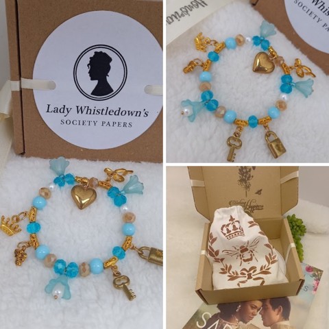 Bridgerton ihletésű-charm karkötő, virággyöngyökkel-B002