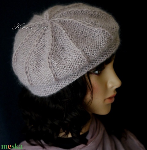 ALETTA / drapp - kézzel kötött gyapjú + silk-mohair svájci sapka, barett KÉSZLETEN