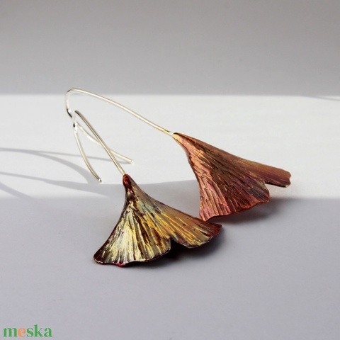 Ginkgo levél fülbevaló vörösrézből ezüst szárral