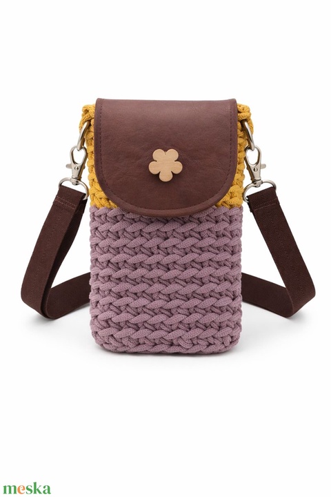 Horgolt válltáska, telefontáska, telefontartó, fesztiváltáska