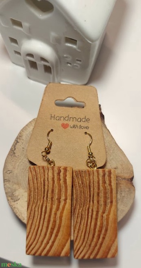 Vörösfenyő fa kézműves fülbevaló