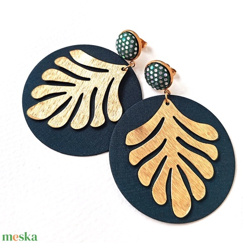 Sötétzöld nagyméretű textilfülbevaló aranyozott nemesacél alkatrészekkel