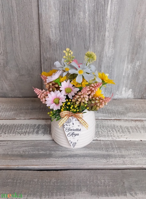 Szeretet-Szív Virágai - Tavaszi Asztaldísz/Virágos Asztaldísz/Köszöntő Virágdísz/Anyák-napi Asztaldísz