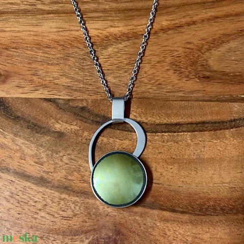 Eozinos mentett porcelán darabok - nemesacél nyaklánc eozin mázas porcelánnal