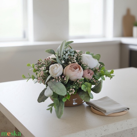Romantikus virágos asztaldísz pasztell árnyalatokkal – elegáns, gondozásmentes dekoráció