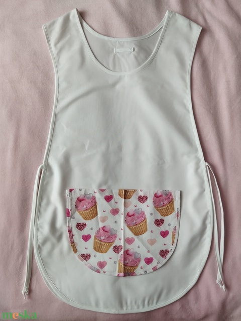 Női fehér lapköpeny,mintás zsebbel , ovis , munkaruha
