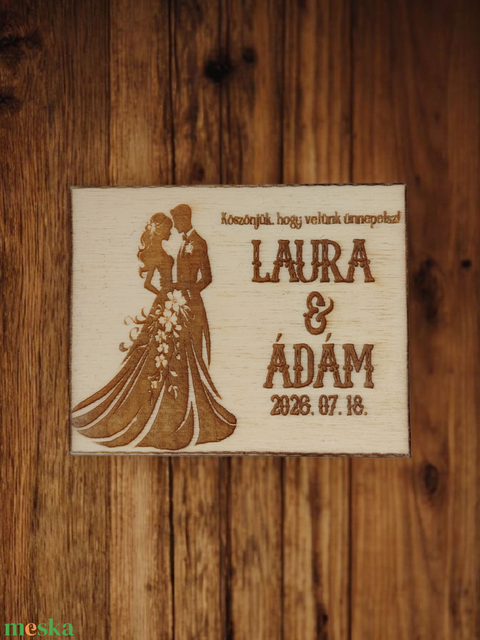 Egyedi gravírozott fa hűtőmágnes ! Esküvői köszönőajándék!