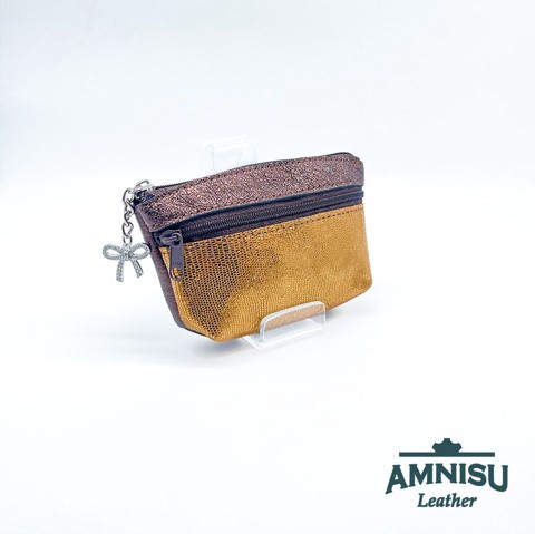 Sötétbarna - arany mintás kettő cipzáras kulcstartó B9001