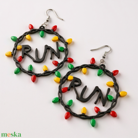Stranger Things Karika Fülbevaló Ikonikus Égősorral és Run Felirattal Egyedi Tervezésű