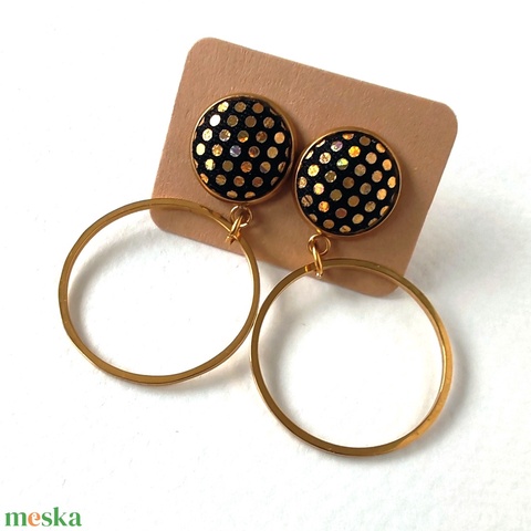 Arany csillogós és kisméretű aranyozott textilfülbevaló nemesacél karikával