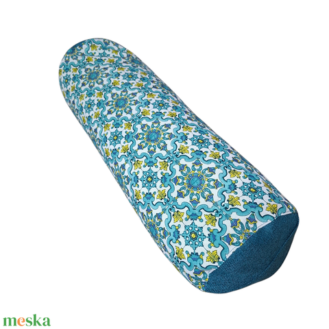 Henger párna tönköly pelyvával töltve, Kék-zöld csempemintás