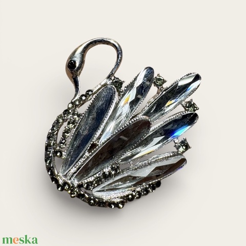 Kristály hattyú retro BROSS az 1980-as évekből, gyönyörű elegáns strasszos kitűző, pin szövetkabátra, blúzra, blézerre