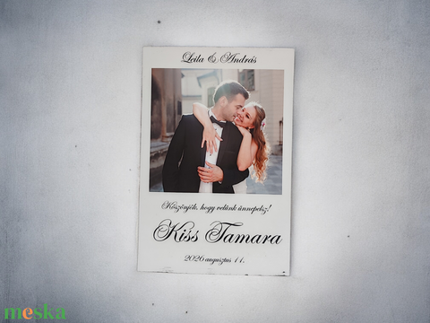 • Egyedi dizájn: A neveket, valamint a dátumot tartalmazó elegáns betűtípusokkal és letisztult kerettel a dizájn időtálló és stílusos.