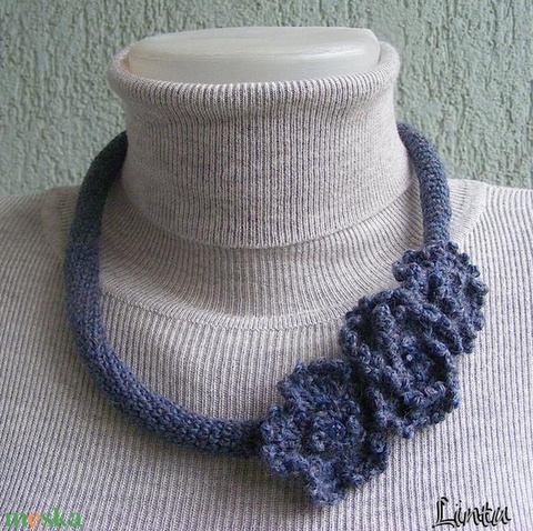 Horgolt nyaklánc tkék színben