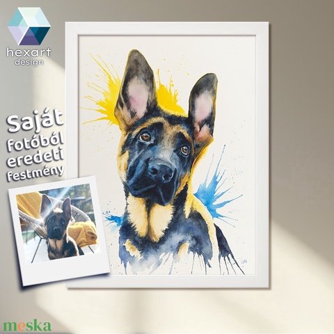 Ha ajándékba vennél eredeti festményt, de nagyon sürget az idő (kb. 6-7 munkanap egy egyedi festmény elkészítési ideje), akkor nézz körül a Kész állatportrék kategóriában is. Itt változó és megújuló kínálatot találsz a legnépszerűbb állatfajtákból: https://www.meska.hu/shop/Hexartdesign?s=68537