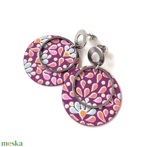 Lila mintás kisméretű textilfülbevaló nemesacél alkatrészekkel