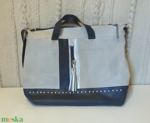 Válltáska, kézitáska, valódi bőr. Kék, halványszürke, ezüst. Új, egyedi, kézműves. Ajándéknak is