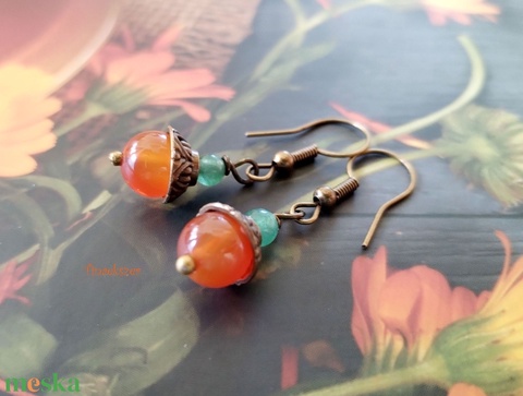 Karneol és aventurin fülbevaló - narancssárga karneol és zöld aventurin