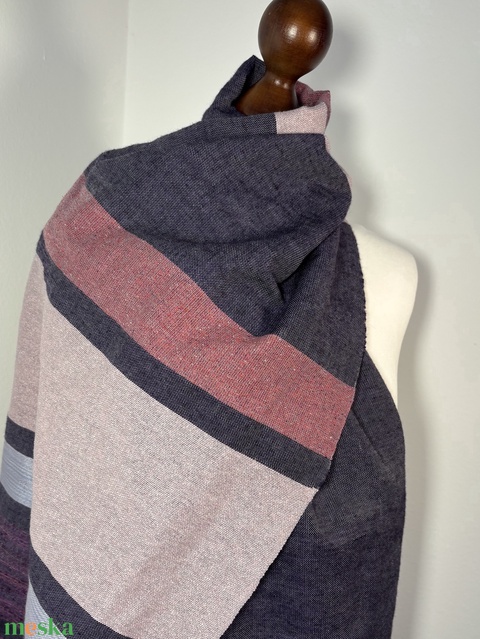 Kézzel Szőtt Merinó–Selyem Kendő Yak Gyapjúval, Lila–Rózsaszín Csíkos Vállkendő, Kézműves Prémium Sál