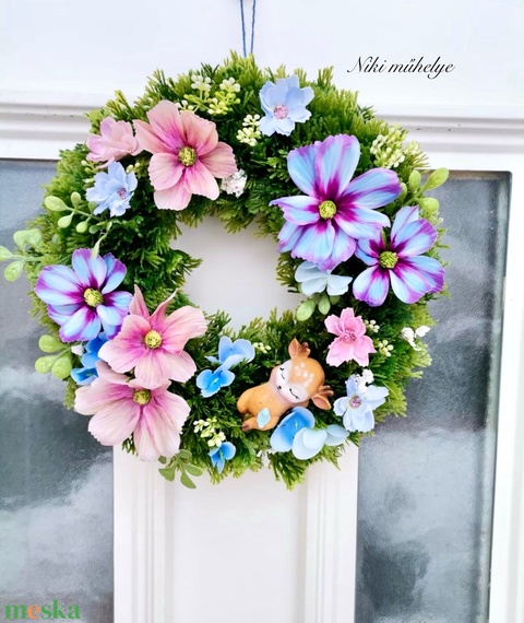Őzike ajtódísz, pillangóvirág kopogtató, tavaszi dekoráció, őz ajtódísz