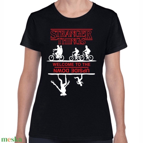 Stranger Things welcome to the upside down női póló. Minőségi 100% pamut egyedi női póló.
