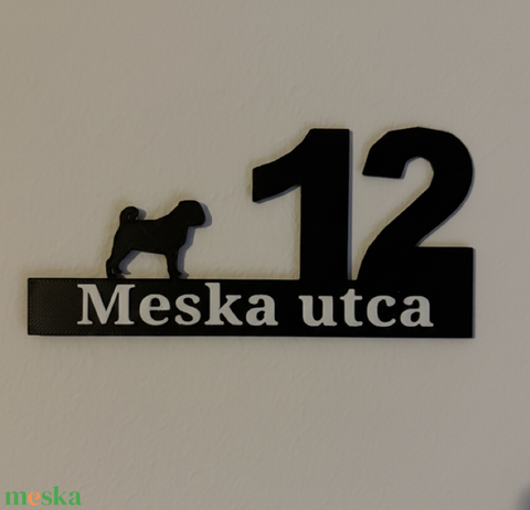 Egyedi mopsz mintás házszámtábla