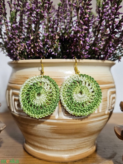 Horgolt fülbevaló - kör tallér - zöld színátmenetes