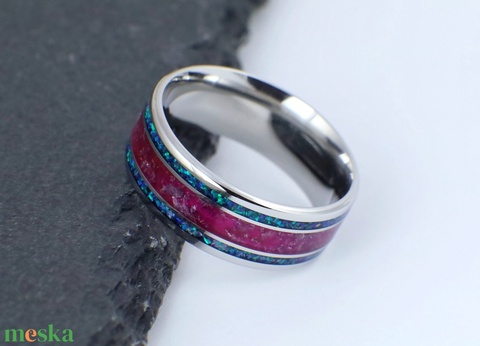 Nemesacél Gyűrű Ametiszttel, Kék Opállal. Vízálló, Karcálló, Anti-Allergén, Egyedi Megrendelésre!