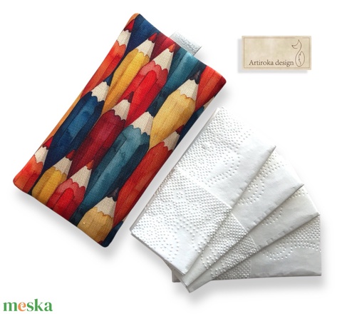 Zsebkendő tartó - színes ceruzák mintával - Artiroka design
