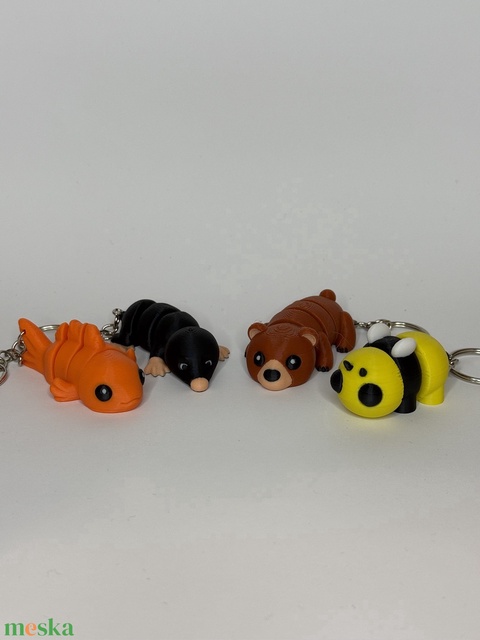 Ez a csomag négy különböző, imádnivaló és interaktív kulcstartót tartalmaz, amelyek a legmodernebb 3D nyomtatási technológiával készültek. A figurák különlegessége a szelvényezett test, amelynek köszönhetően élethűen mozognak, hajlanak és tekeregnek a kezedben – tökéletes stresszoldó "fidget" játékok minden korosztálynak.