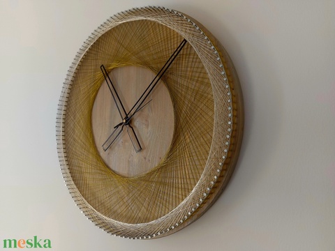 Falióra cérnakép ihletésre. A két gyűrű dróthúrokból formálódik és ad szép keretet a faliórának.