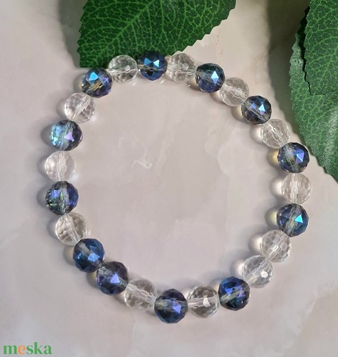 Fazettált kék aurakvarc és hegyikristály karkötő