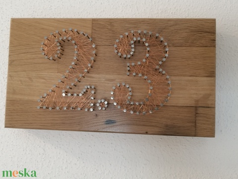 Drótozással a cérnaképek mintájára készült ajtó- illetve házszám tábla.