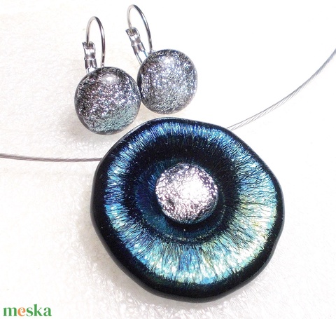 Gyöngykagyló dichroic ékszerszett , ajándék névnapra, születésnapra.