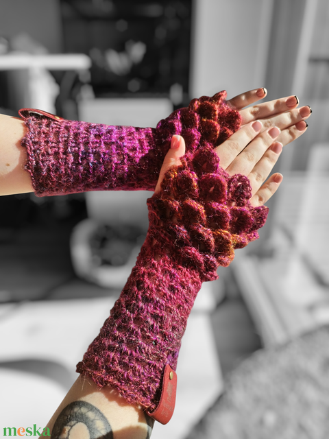 Horgolt ujjatlan 'sárkány' kesztyű - Bordó