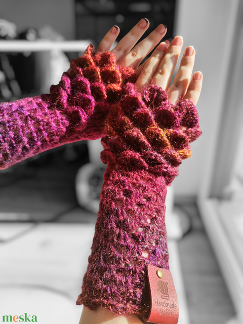 Horgolt ujjatlan 'sárkány' kesztyű - Rendelésre