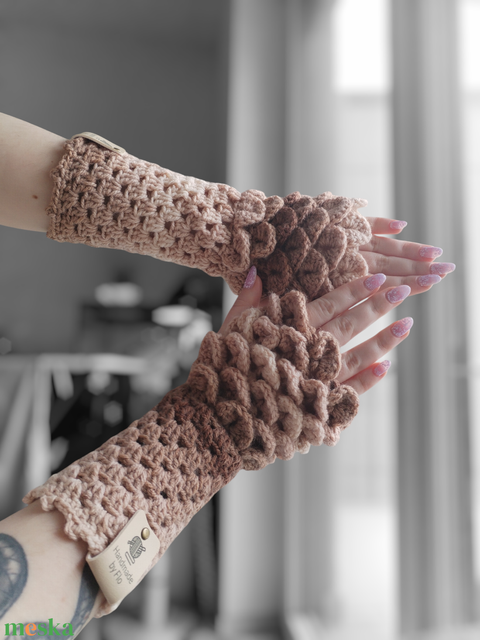 Horgolt ujjatlan 'sárkány' kesztyű - Bézs