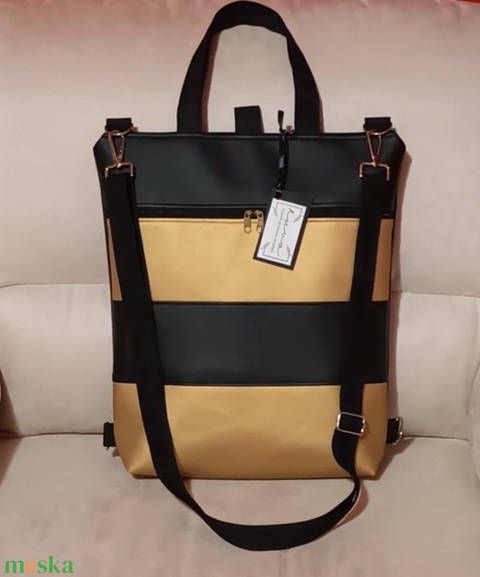Egyedi fekete-arany műbőr többfunkciós/ variálható táska