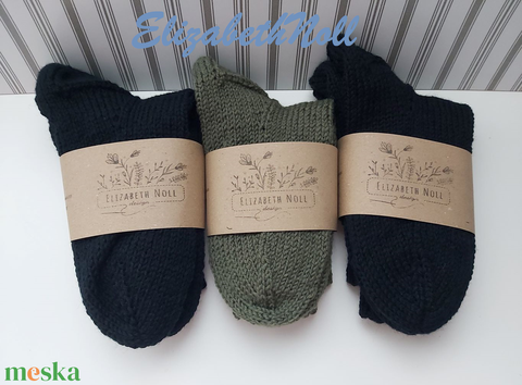 3 pár kézzel kötött, 100% gyapjú zokni
