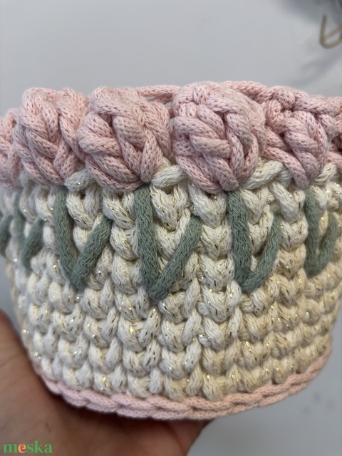 Horgolt tulipános tároló