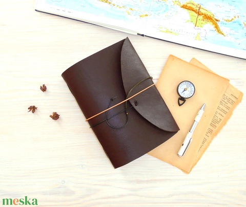KALANDOR - Valódi bőr borítású kézműves napló A5 méretben - Iránytű motívummal