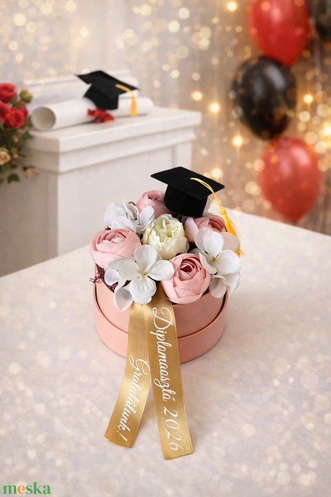 Diplomaosztó virágbox rózsaszín dobozban