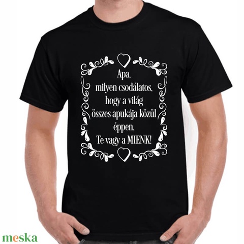 Apa, milyen csodálatos, hogy a világ összes apukája közül éppen, Te vagy a MIENK! Feliratos póló apának. 100% pamut.