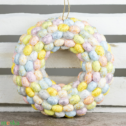 - Anyaga: szalma alap, színes hungarocell tojások, vatta
