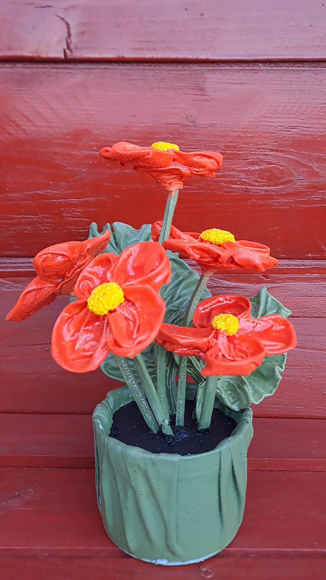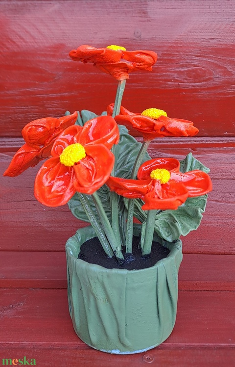 Kisvirágok zöld tartóban