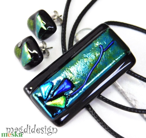 színes üveg, nikkelmentes szerelék, dichroic, eozin, bőrhatású szál, nemesacél