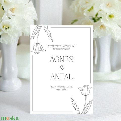 esküvő, meghívó & kártya, meghívó, nyomtatható, digitális, printable, digital, wedding, invitation, tulipán, tulipános, színes, vonal, minimál, minimal, egyszerű, minimalista, világos, fehér, elegáns