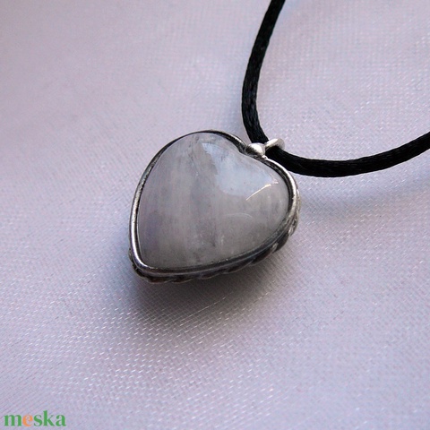 A medál Tiffany technikával készült holdkő és ólommentes, ezüsttartalmú ón felhasználásával. A díszítés szintén saját készítésű, nem tartalmaz gyári elemeket. A fémrészt óezüstre patináztam és lelakkoztam, hogy sokáig szép maradjon.