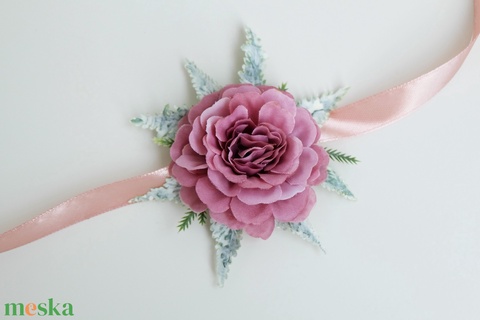 Esküvői csuklódísz selyemvirágból mályva rózsaszín