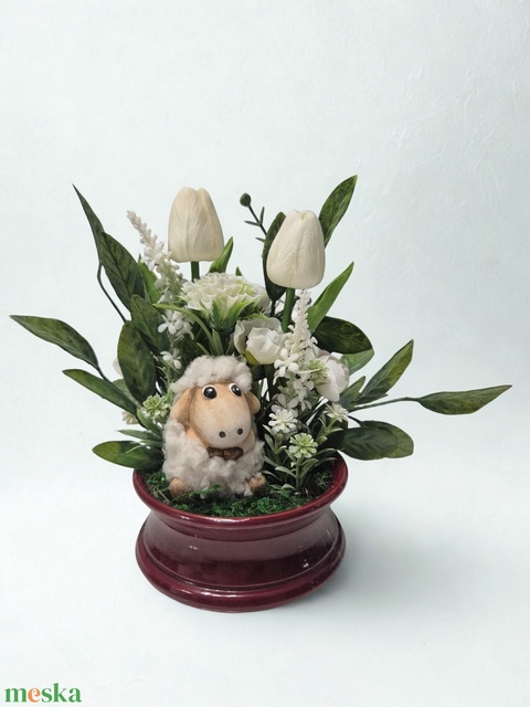 Csendes tavasz egy báránnyal – letisztult asztaldísz természetes hatású zöldekkel – elegáns, gondozásmentes dekoráció